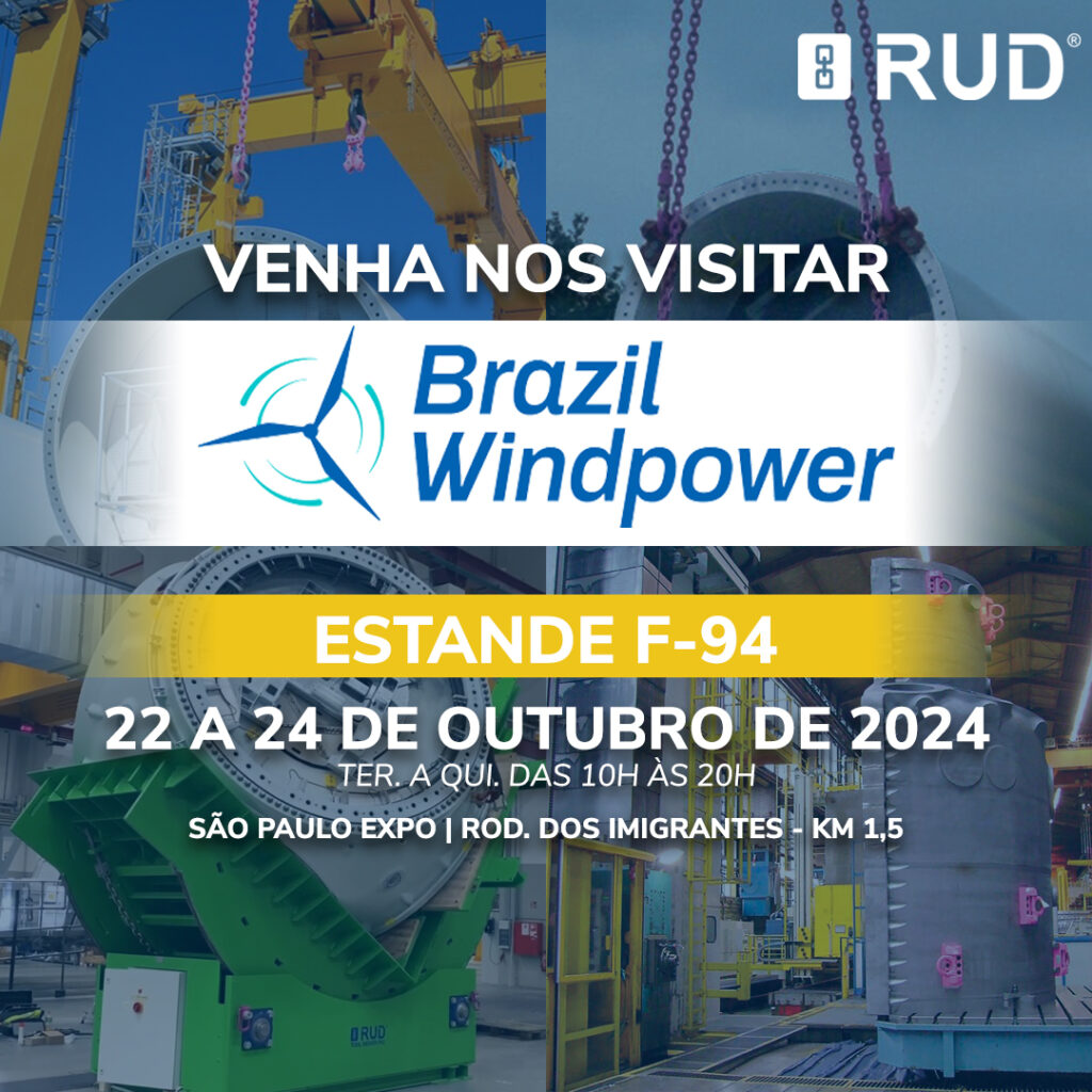 De 22 a 24 de outubro nós temos um encontro marcado no São Paulo Expo, sede da Brazil WindPower. Evento especial em que a RUD vai apresentar Dispositivos especiais, lingas de correntes, olhais e acessórios para içamento, movimentação e transporte de torres eólicas.