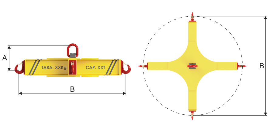 • Construção: Travessão fabricado a partir de perfil estrutural, soldado por profissionais qualificados. Possui olhal LBS de alta resistência, projetado para engate com ganchos de ponte rolante conforme norma DIN 15401. Conta com múltiplos pontos de fixação por meio de ganchos forjados modelo GSH-S, soldados diretamente à viga, permitindo o engate seguro de lingas ou outros acessórios de içamento. O acabamento superficial é realizado com pintura industrial de alta resistência, garantindo durabilidade e proteção contra ambientes agressivos.