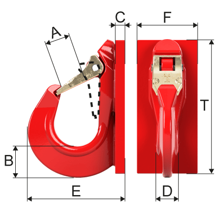 Gancho soldável com trava de segurança microfundida que oferece maior resistência a corrosão.