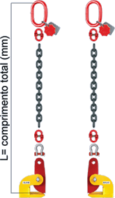Atenção: as lingas de 1 ramal com pega-chapas são fornecidas em pares (2 lingas de 1 ramal) pois o pega-chapa horizontal só trabalha em pares