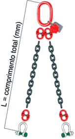 | Descrição | Corrente ø nominal | Carga máxima de trabalho (kg) | Código | Informe o comprimento L | |||