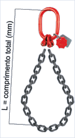| Descrição | Corrente ø nominal | Carga máxima de trabalho (kg) | Código | Informe o comprimento L | ||