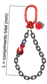 | Descrição | Corrente ø nominal | Carga máxima de trabalho (kg) | Código | Informe o comprimento L | ||