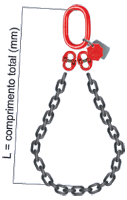 | Descrição | Corrente ø nominal | Carga máxima de trabalho (kg) | Código | Informe o comprimento L | ||