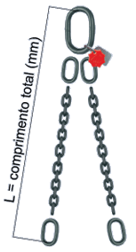 | Descrição | Corrente ø nominal | Carga máxima de trabalho (kg) | Código | Informe o comprimento L | |||