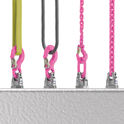 - Conexão universal com todos os meios de içamento: corrente, cinta ou cabo de aço