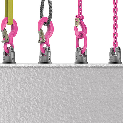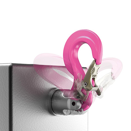 - Conexão universal com todos os meios de içamento: corrente, cinta ou cabo de aço