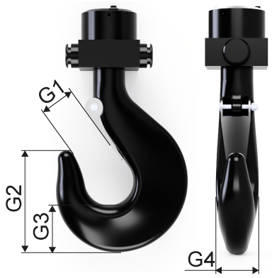 Gancho soldável com trava de segurança microfundida que oferece maior resistência a corrosão.