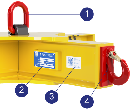 - Construção: Travessão fabricado a partir de perfil estrutural, soldado por profissionais qualificados. Possui olhal LBS de alta resistência, projetado para engate com ganchos de ponte rolante conforme norma DIN 15401. Conta com múltiplos pontos de fixação por meio de ganchos forjados modelo GSH-S, soldados diretamente à viga, permitindo o engate seguro de lingas ou outros acessórios de içamento. O acabamento superficial é realizado com pintura industrial de alta resistência, garantindo durabilidade e proteção contra ambientes agressivos.